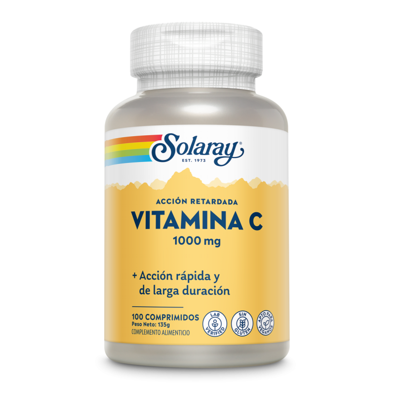Vit. C 1000 mg. A/R-100 comp. Apto para veganos. Sin gluten.