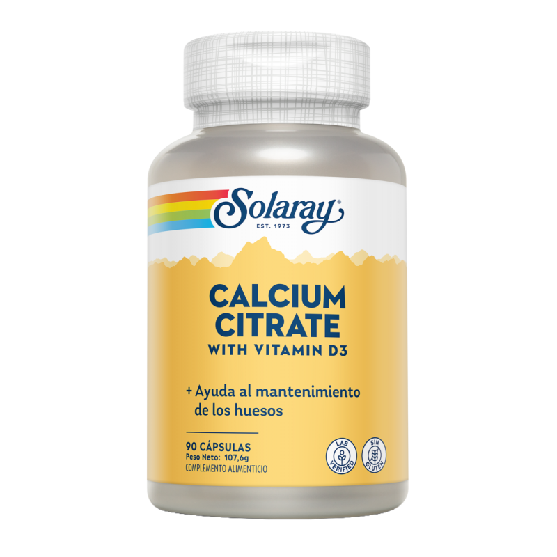 Calcium w/D3 Citrate - 90 Cápsulas. Sin gluten.