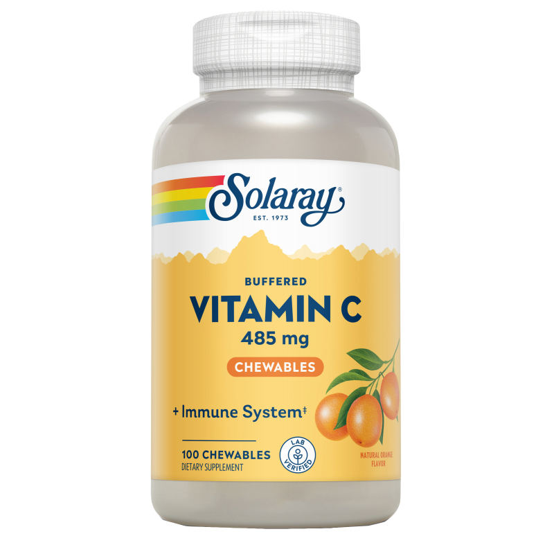 Vitamina C masticable con agradable sabor a naranja.