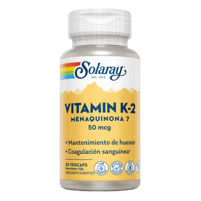 Vitamina K2 (Menaquinone-7)-30 VegCaps. Sin soja. Apto para veganos. Sin gluten.