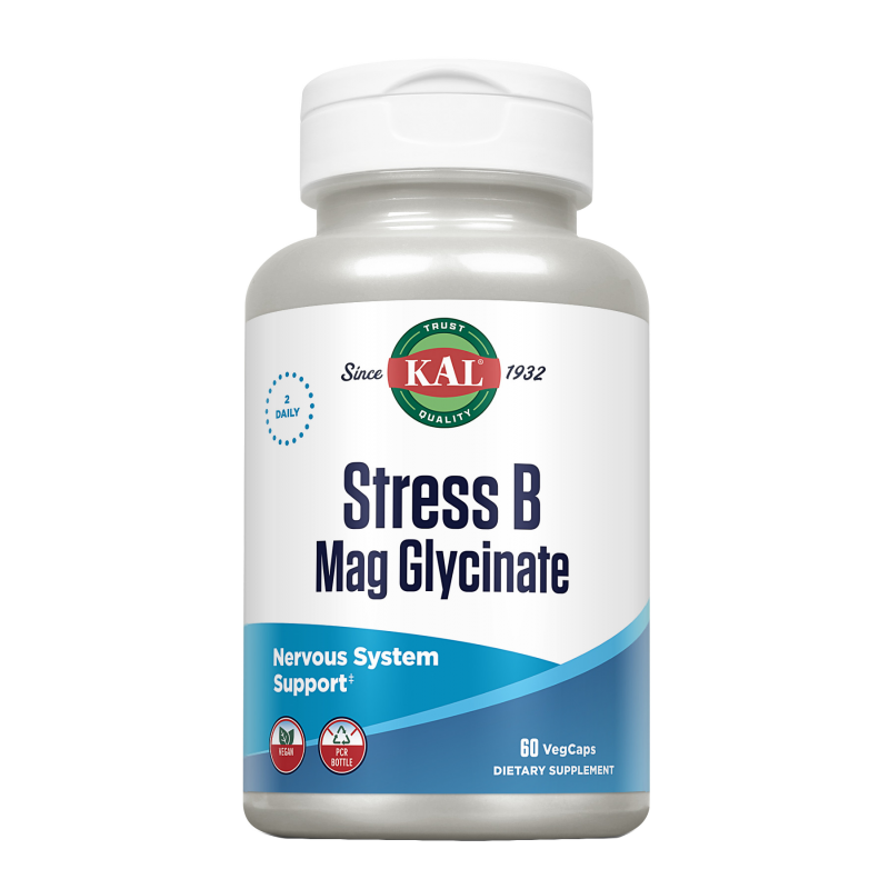 Stress B Mag Glycinate-60 VegCaps. Sin gluten.